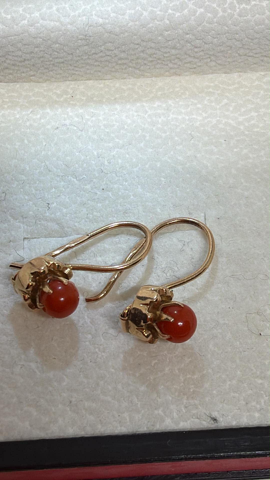 ძველი საბჭოთა ქარხნული ოქროს საყურე მარჯნით.