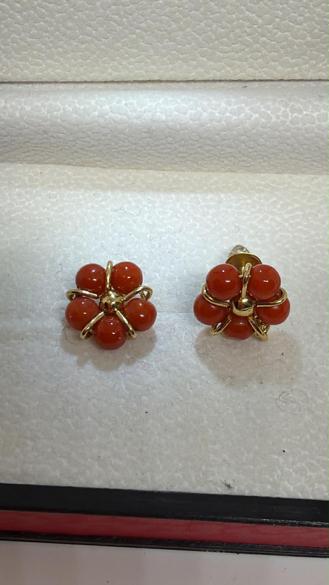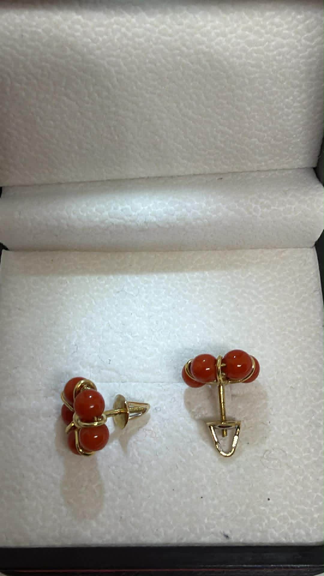 ევროპული ქარხნული ოქროს საყურეები ნატურალური მარჯნებით.
