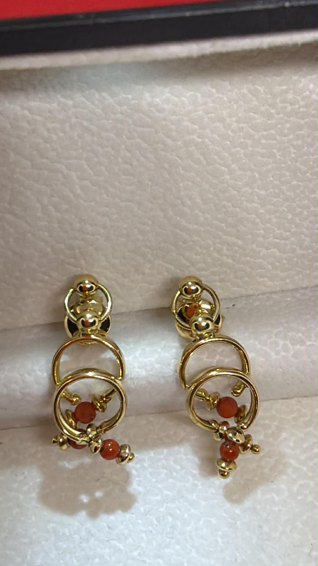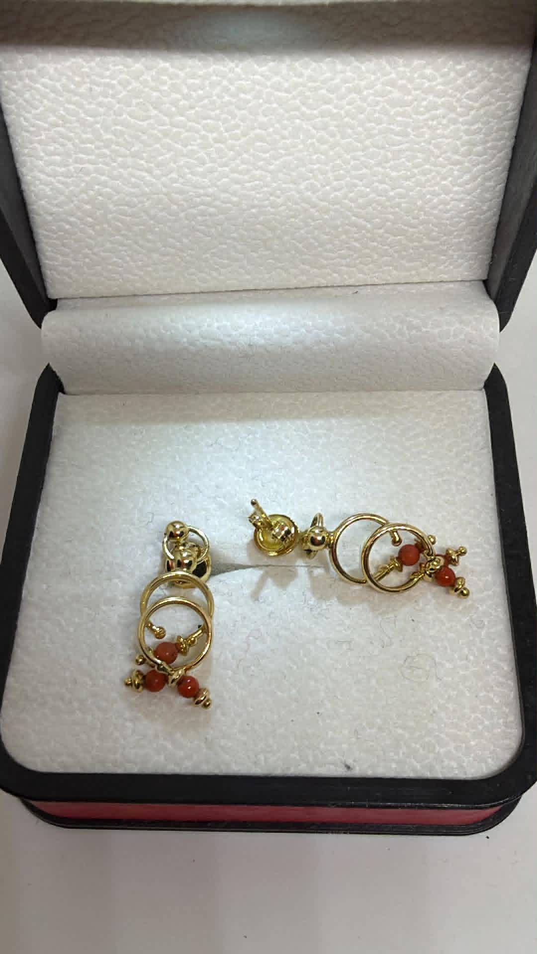 ევროპული ქარხნული ოქროს საყურეები ნატურალური მარჯნებით.