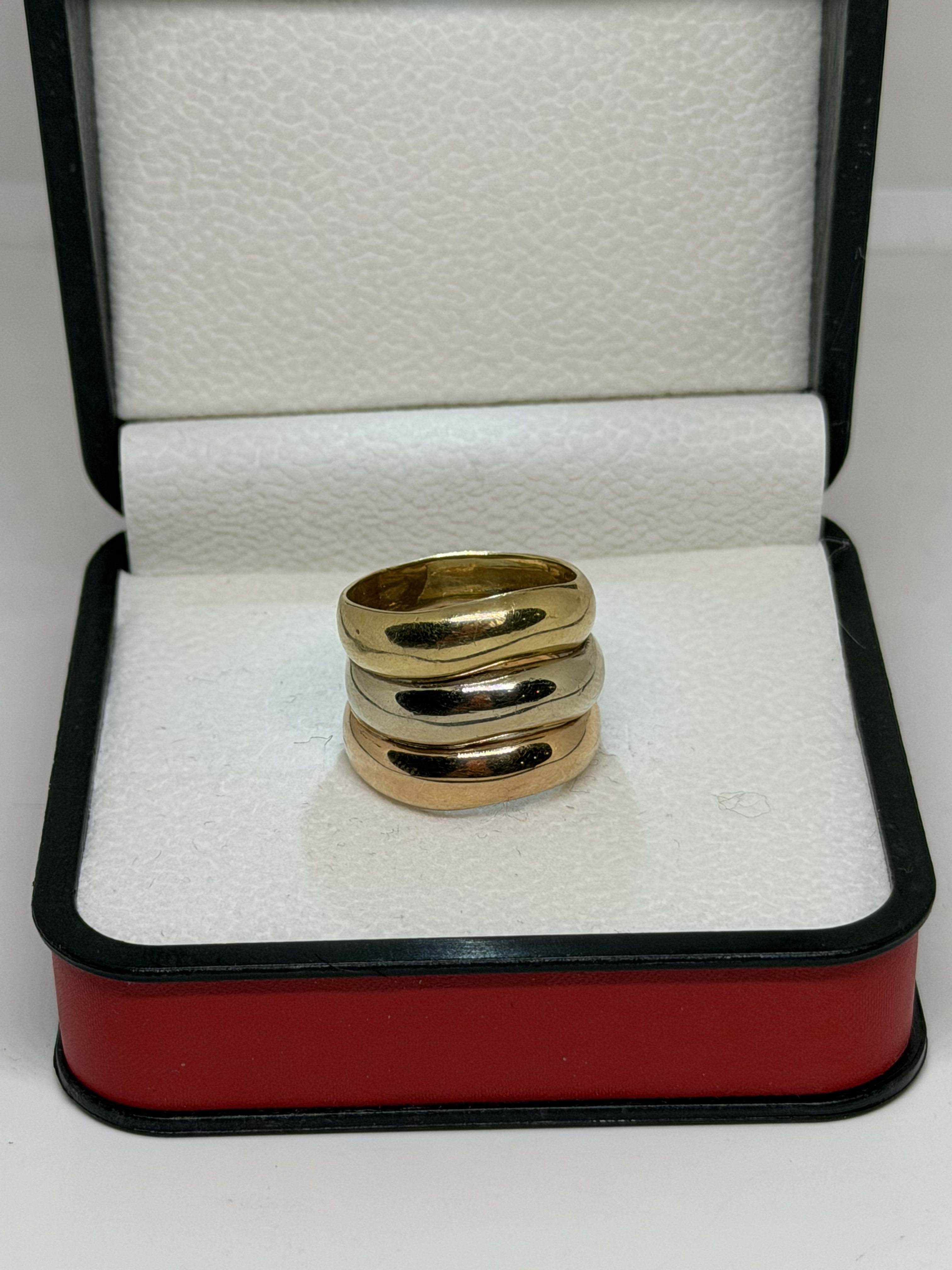 ევროპული ქარხნული ოქროს ბეჭედი სამ ფერში. ზომა: 17-17.5. ოქროს ბირჟა, თბილისი ცენტრალი, მაგიდა 63